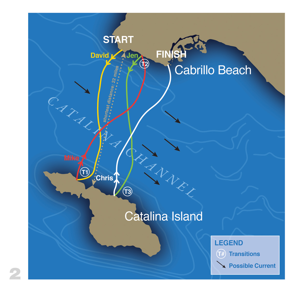 Four swimmers will attempt to do four consecutive channel crossings – a relay of sorts – with each swimming a complete solo Catalina Channel crossing. Each subsequent swimmer will be at the mercy of the elements and the time and arrival location of their teammates who go off before them, together with literally hundreds of volunteers and support crew manning escort boats, guide boats, kayakers and onshore personnel.