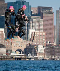 The swimmers spend time swimming in between two large escort boats while socializing and gazing at the Boston skyline and ocean horizon. For an open water swimmer, it is one of the most magnificent ways to spend a leisurely Friday during summer.