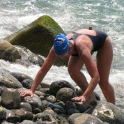 As she carefully clawed her way over the rocks at the finish on the California mainland, Forrest Nelson stood a short distance away and encouraging her. “He said, ‘Keep going, keep going’ until I was on dry rocks and was officially finished. I burst into tears. Joe Locke and one of my other friends were also there to greet me. I’ve learned that these events are not merely swims, they are personal emotional journeys and one thing is for sure, you emerge from the water a different person that the one who jumped in at the beginning.”