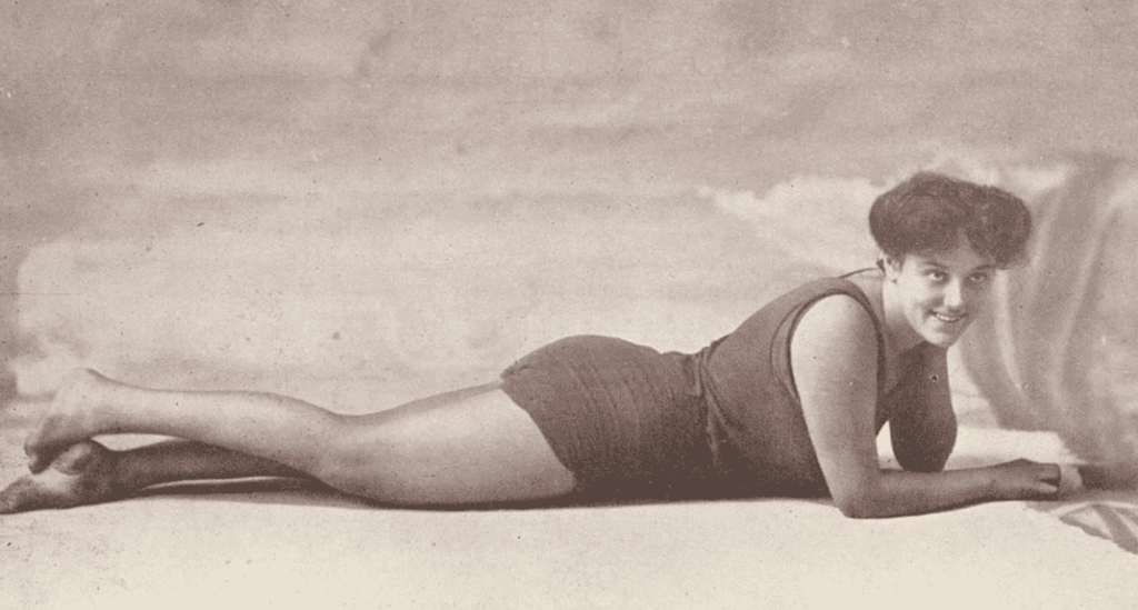 A Dover pilot, who had accompanies many Channel aspirants, said, “Any fool knows that of all Channel swimmers only Burgess has an earthly chance of getting there. I have seen all the best of them, good, bad, and indifferent, including Holbein, Wolfe, and Heaton [shown above]; but Burgess’s most dangerous rival was Miss Kellerman, until she decided to abandon further effort.” Twice this pilot watched Miss Kellerman [shown below], and his opinion is still that upon both occasions she could have remained in the water hours longer than she was permitted.