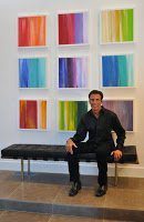 “The majority of my paintings are inspired by the many colors and layers I see in the water and on land when I am swimming,” explained Craig who creates his artwork and then donates the proceeds to charities. “Swimming in open water feels borderless, but no matter how far I swim, definite boundaries exist. Ocean swimmers are constantly sighting. These surroundings inspire my work.”
