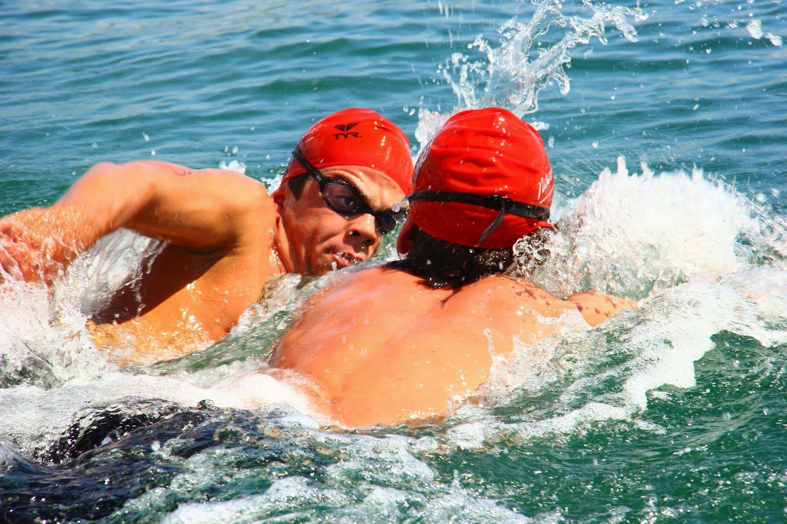 Even surrounded by a lush tropical rainforest in a beautiful protected marine sanctuary, the intensity of competition and the focused emotion among open water swimmers are evident.