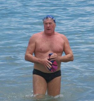 Photo shows Dr. Otto Thaning who is planning to cross the English Channel at the age of 72 this summer, without a wetsuit adhering to the Channel Rules.