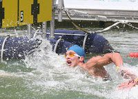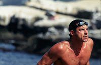 Dyatchin is shown above finishing at the 2008 FINA World Open Water Swimming Championships in Seville where he qualified first for the Olympic 10K Marathon Swim. Rodrigues is shown below exiting the water to win the La Jolla Rough Water Swim, America’s Premier Rough Water Swim that has been held since 1916.