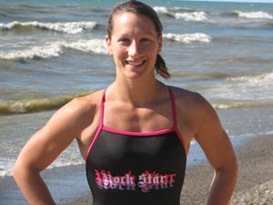 2007: Sonya Pyle (shown above) swam 24.3 miles in 14 hours 9 minutes from Long Point, Ontario to Freeport Beach – North East, Pennsylvania