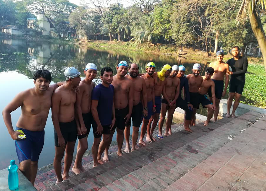 Kabir explains, “We always have been trying to train the youth of our society to develop an interest into open water sea swimming. Youth from Dhaka of different age groups and different walks of life demonstrate their love for and interest in open water swimming training. They undergo vigorous training in a 120 meter tank and pond situated at Dhaka University S.S Jahurul Huq Hall where the training is held five days a week for a year.