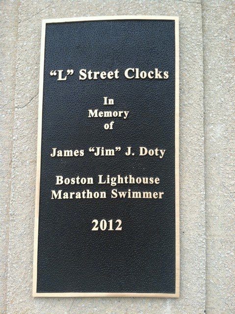 Massachusetts Open Water Swimming Association President Greg O’Connor spoke about how the clocks are a fitting memorial to Doty. “It feels good to see the open water swimming community give back to someone who gave so much of himself.”