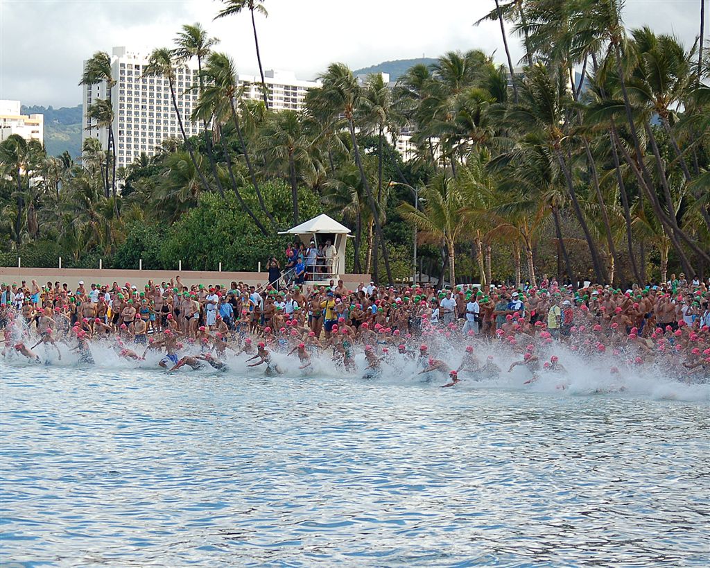 The Waikiki Roughwater Swim is also part of the legacy of multi-sport events. In the early 1980s, its distance gave birth to the swim leg of the Hawaiian Ironman Triathlon when its 2.4-mile distance became the standard distance of full-length Ironman triathlons.