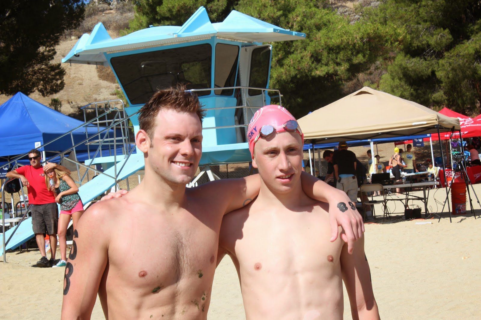 On the domestic front, there is arguably no more of a gentlemen’s sport than the elite open water swimmers of America. At today’s 2014 USA Swimming 5 km National Open Water Swimming Championship in Castaic Lake, there was not one warning whistle or yellow flag or red flag called.