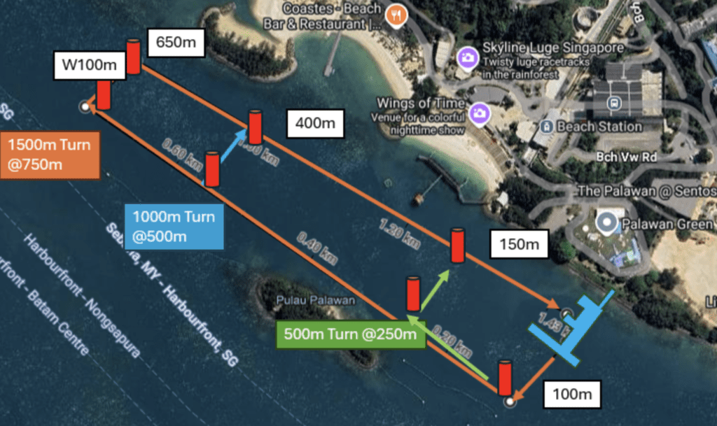 The races start at 8:00 am on Palawan Beach on Sentosa is an island resort off Singapore’s southern coast. Spectators can get to the island from the city via road, cable car, pedestrian boardwalk and monorail.