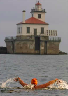 Vicki Keith is shown above swimming butterfly across Lake Ontario.