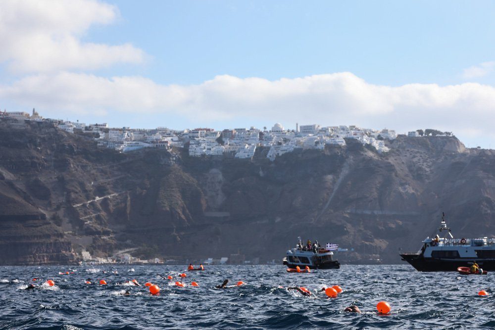After a 15 km run within a stunning view of the Caldera on Day 1, a 2.4 km swim from the volcano to the old port of Fira will be held on Day 2 on October 4th in an estimated 20-22°C.