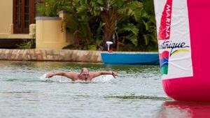 Photo by Clive Wright shows Brenton Williams swimming 17 km butterfly in South Africa.