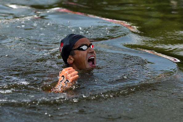 The race appeared to be on the slow side for the elite swimmers over the first 7 km. The men were swimming casually at times with some increased efforts here and there. This pacing played right into the hands of the 3-time Tunisian Olympic medalist. The pace essentially turned a 10 km race into a 3 km race.
