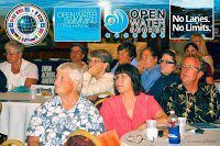The speakers and presentors at the 2012 Global Open Water Swimming Conference had the audience engaged and entertained with stories and dramatic retelling of aquatic exploits from around the world.