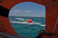 27-year-old Mexican Olympian Luis Escobar Torres, commented on his 7th-place finish, “It was a very good competition for me, I was in the lead group throughout the race which is very good because they are the best in the world. On the last lap, with 600 meters to go, I dropped off a bit, but it was a good effort and is very useful to me what comes in six weeks at the Olympic Trials [in Setubal, Portugal]. There were many turns around the buoys [over 60] that did much to stop my rhythm. Every 300 meters I had to stop. But it was an excellent result because we will have similar conditions in Portugal.”