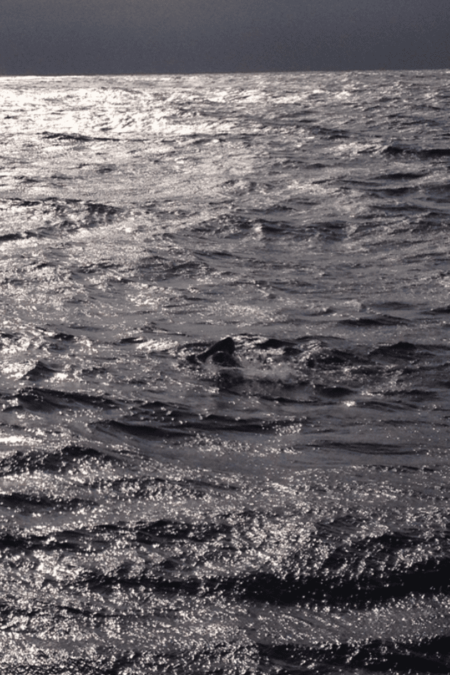 On Day 3, the group remains strong and undaunted by anything the Pacific Ocean has thrown at them…so far. Cutti encountered the first shark on Day 2 when a curious 5-footer circled the escort boat. Cutti swam towards the shark and scared it away.