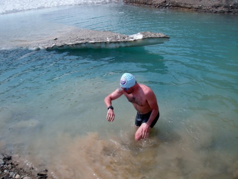 Photo shows Bright training in small glacial lake.