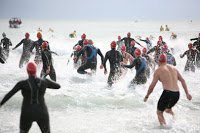 Photo on left shows Daniel Kowalski celebrating his 2007 1.2K Lorne Pier to Pub win in Australia (happening this weekend), a swim so popular that a random drawing is used to select who is luckiest to participate.