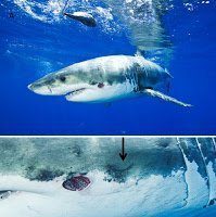 Divers in Guadalupe Island about 240 kilometers west of Mexico’s Baja California found evidence that cookiecutter sharks also take round bite-size chunks from great white sharks. The photograph and evidence was documented in a study published recently in the journal Pacific Science. For more information, visit here.