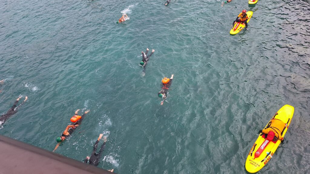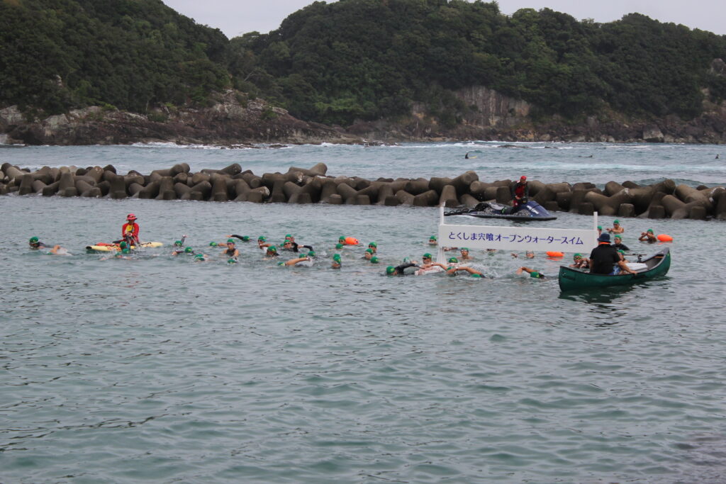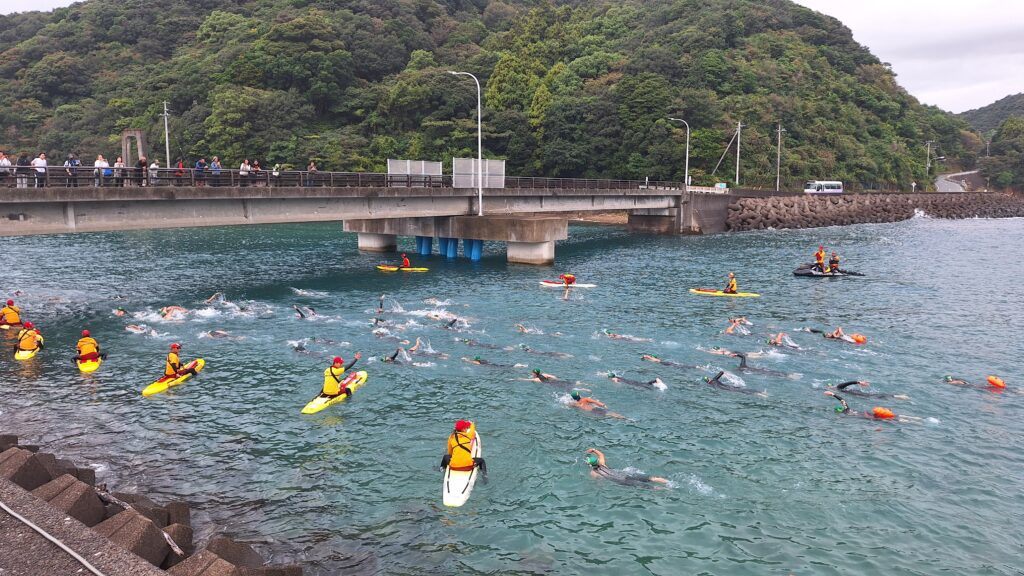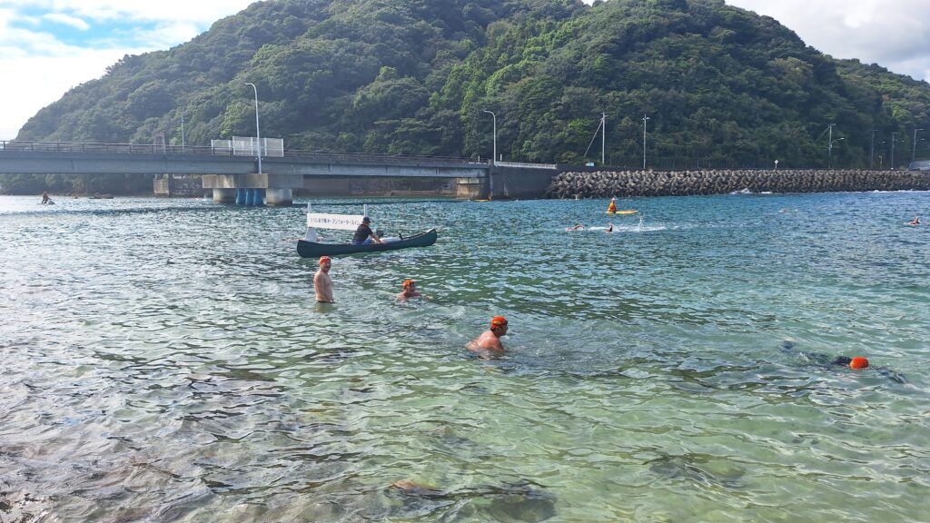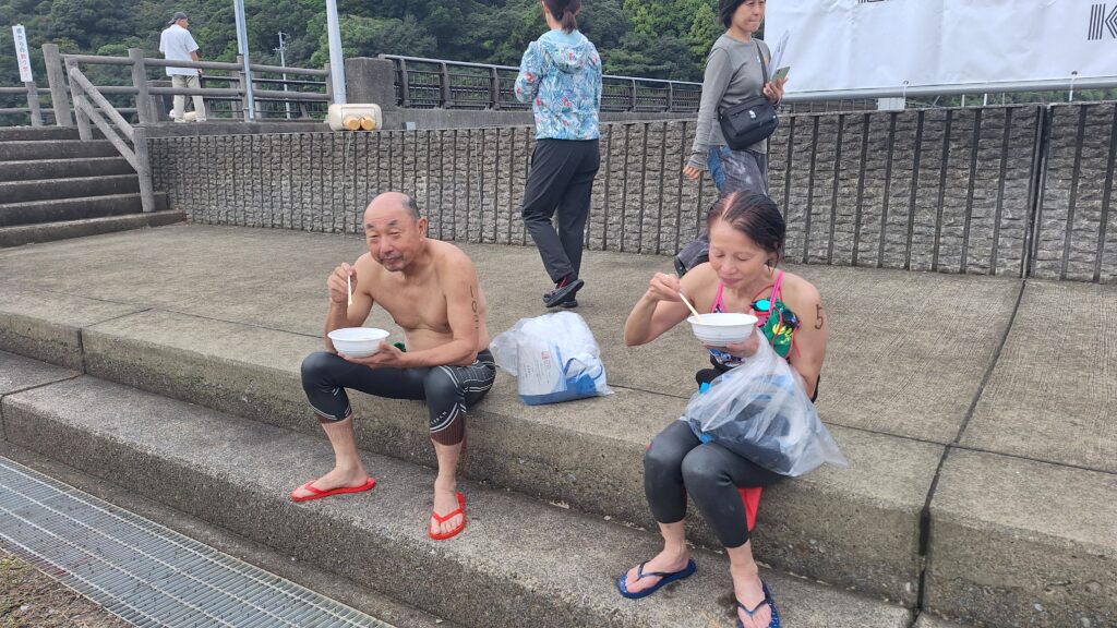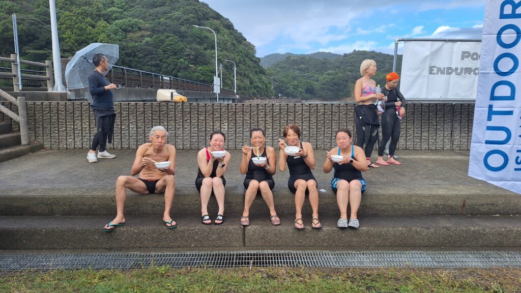 With the surf pounding the many offshore islands and beautiful reefs of the Takegashima Marine Park, World Aquatics open water swimming official Tamako Kihara did a wonderful job designing the beautiful race courses that were enjoyed by the field who were also treated to a meal of udon noodles between the two races.
