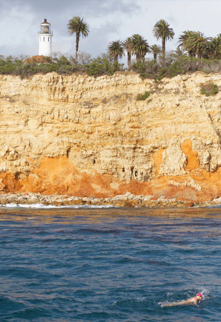 Argüelles is shown on left swimming near Palos Verdes Peninsula where he completed a 64.6 km two-way crossing of the Catalina Channel in 24 hours 17 minutes at the age of 60 to join the 24-Hour Club in a photo by Pablo Argüelles Cattori.