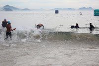 Grimsey led the pack from start to the finish. Swimming straight-line tangents from large buoy to large buoy, Grimsey’s started his kick early in the race and never let up, challenging his competitors to keep up his ferocious pace.
