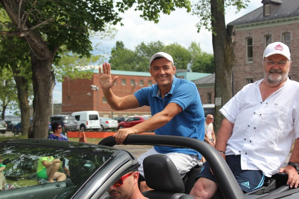 Photos show Tomi Stefanovski in the lead car at the swimmers’ parade at the Traversée internationale du lac St-Jean.