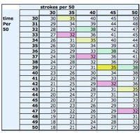 Their turnover ranges from 73 strokes per minute for Philip Rush for over 28 hours in his English Channel three-way swim and Penny Dean’s spm pace in the mid-80s during her channel records swims to 97 for Eva Fabian on her world 5K championship in Canada last year.