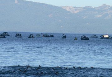 The Trans Tahoe Relay is one of the most popular open water swims in America. High up in the Sierra Nevada Mountains between the states of California and Nevada, the beautiful Lake Tahoe draws hundreds of six-person teams to its annual 10-mile relay race.