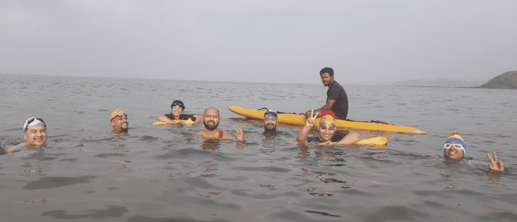 With the Mandovi channel being an active channel for boats and barges, the safety plan in place for swimmers was precisely planned out – all swimmers were wearing swim buoys, there were two boats with trained coaches, two kayaks and 1 jetski – with a very specific swim route charted out, to ensure swimmers would not be pushed up-stream with the incoming tide.“