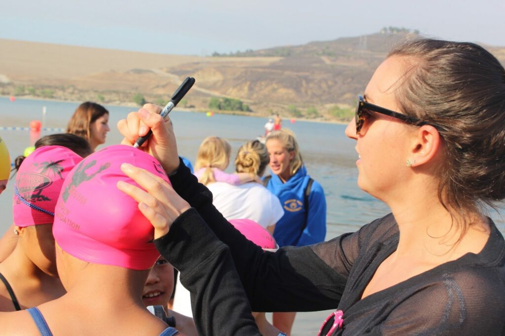 Soon she was surrounded by young swimmers who eagerly asked for autographs and posed for photos. With the gracious smile of a personable Olympian, Soni accommodated everyone and signed their swim caps and skins.