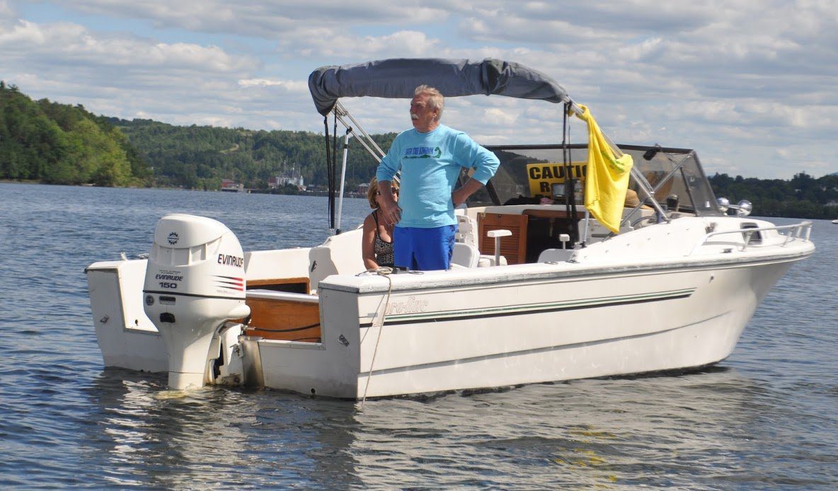 * Chris Steele is a 60-year-old escort pilot from Derby, Vermont. As a contributor and crew, Steele piloted and led the fleet of patrol boats supporting the inaugural Kingdom Swim in 2009. He served as the First Rear Admiral of the fleet from 2010 to 2012 and piloted a boat in the first two In Search of Memphre swims through fierce weather conditions. He has supported every Kingdom Swim that his boat was in the water since 2009.
