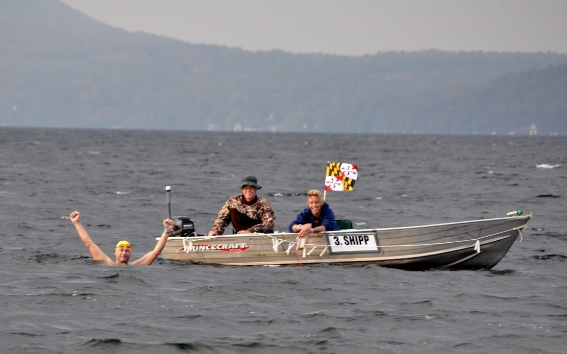 * Bill Shipp is a 56-year-olld swimmer from Mitchelville, Maryland. As a marathon swimmer, Shipp completed the Triple Crown of Open Water Swimming during 2014 and 2015 (i.e., 21-mile English Channel, 20-mile Catalina Channel, and 28.5-mile Manhattan Island Marathon Swim). Shipp’s Vermont record started with the 10-mile Kingdom Swim in 2010. He then overcame cancer, returned in 2011 for another 10-mile Kingdom Swim and attempted the inaugural 25-mile In Search of Memphre. Shipp completed In Search of Memphre in 2012, was the top male at the inaugural 15-mile Border Buster in 2014 and was top male in the 25 km Border Buster in 2016.