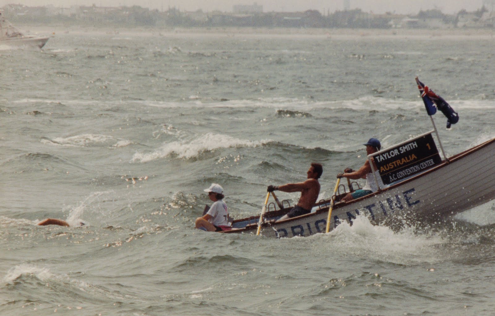 1. Shelley Taylor-Smith of Australia was the dominant female professional marathon swimmer from the mid-1980s to the mid-1990s and the former Secretary General of the FINA Technical Open Water Swimming Committee (shown above swimming around Atlantic City in New Jersey).