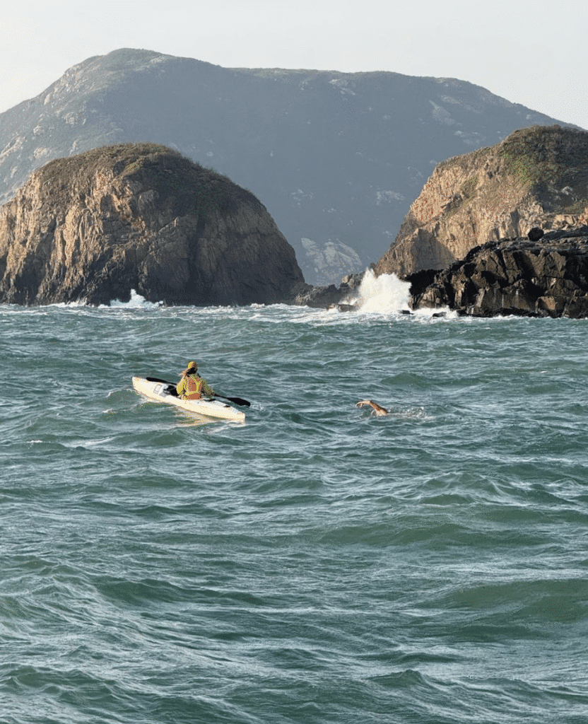 Mills described her record-breaking swim, a powerful narrative of fear, perseverance, and triumph. “In 2024, I visited my father in Hong Kong to participate in a surfski event. While there, I joined him for a swim with the Southside swimming group in Repulse Bay. I met a number of ocean swimmers, including Brett Kruse who was training for the HK360. Talking to them got me interested. Brett, in particular, inspired me with his belief that I could do it. Early in 2025, he connected us with Shu, and we signed up.