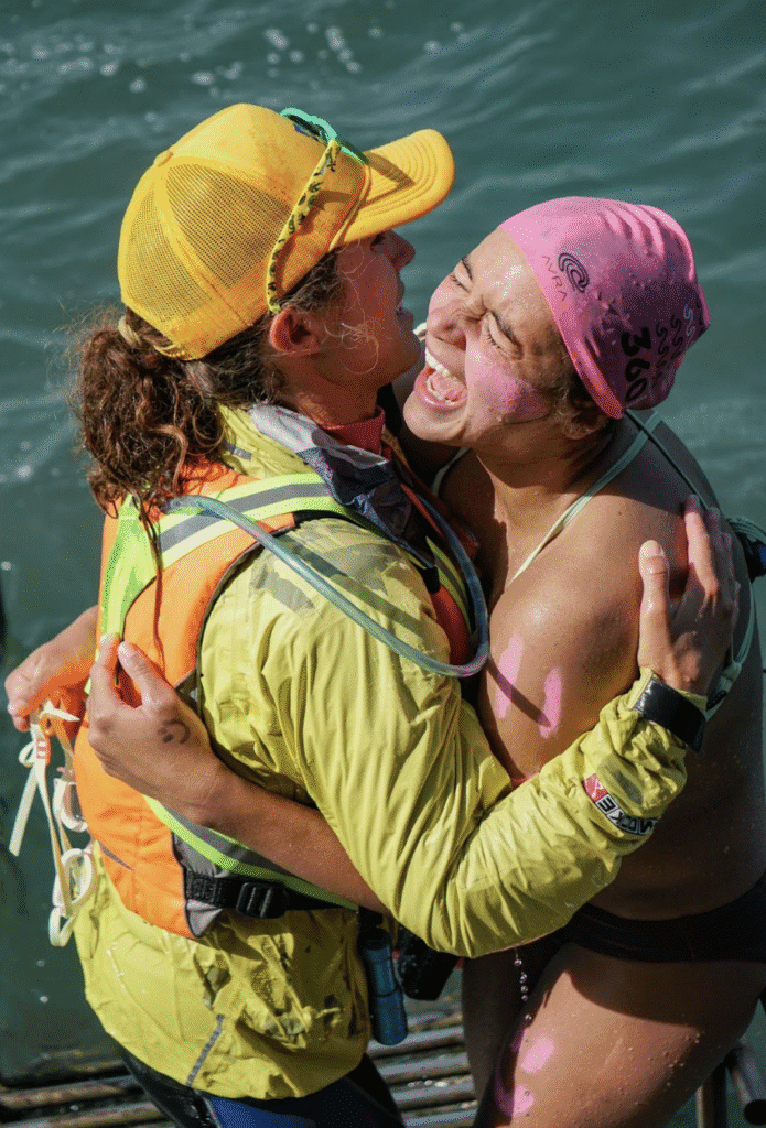 At the last feed, I told Madison I was broken. She said, ‘3 and a half km to go.’ I kept pushing myself to swim harder, to swim faster. I was losing focus, tired and in pain, but what kept me going was when I started to shout names in my head for who I was swimming for. ‘Swim for Madison! Swim for my family, swim for Brett and Gabs, swim for the people on the boat…’