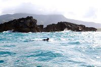 The coach was startled when she thought she saw a wave shark in the water near her swimmer.