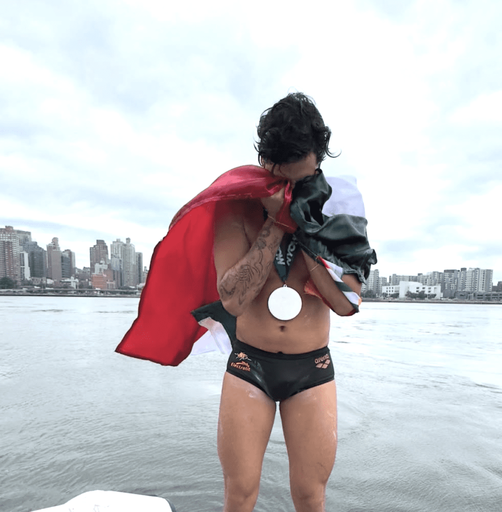 But the most current record holder, 26-year-old David Olvera López hails from a small town of San Luis Potosí in Mexico (World Aquatics bio here, @thefreezewiz). He dreamed big, worked hard, and broke Andy Donaldson’s 20 Bridges overall speed record for swimming 45.9 km around Manhattan Island in New York by nearly 7 minutes. Olvera, guided by the veteran escort paddler Alex Arévalo of New York Open Water, set the standard – that is the subject of a riveting new documentary film.