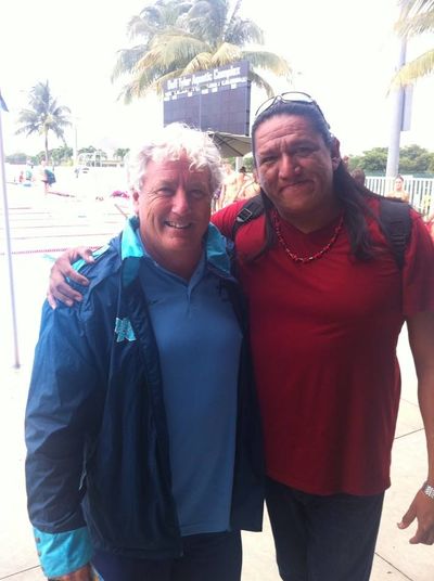Photo shows Snellgrove with Olympic 10K Marathon Swim head referee Sid Cassidy. The two were former USA Swimming national team teammates.