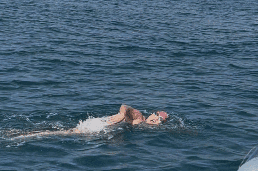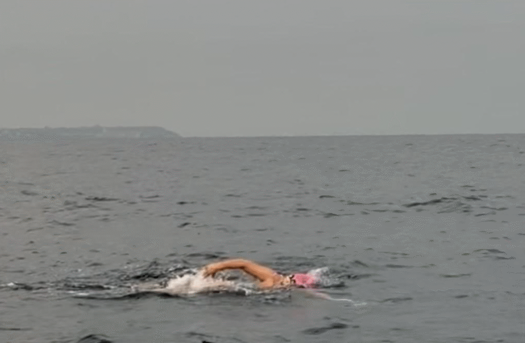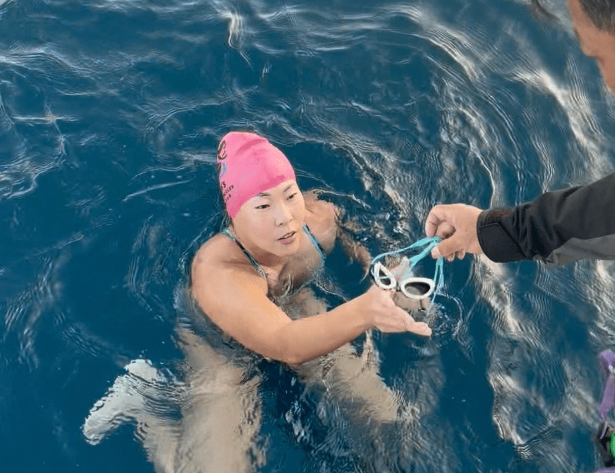 Huang recalls, “She started at 4:12 am in the early morning from Zhongao Beach on Xiaoliuqiu Island and began swimming toward the Taiwan mainland under the escort of a support vessel. The sea conditions were challenging during the early hours with moderate swell and residual night conditions. She maintained a consistent stroke rate throughout the swim, but encountered a significant number of jellyfish mid-swim that resulted in multiple stings, but she continued without interruption.