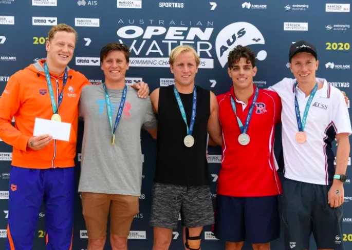 Photo courtesy of Delly Carr from Swimming Australia. Shows (left to right) Ferry Weertman, Nick Sloman, Jordan Wilimovsky, Nicholas Rollo and Riley Clout.