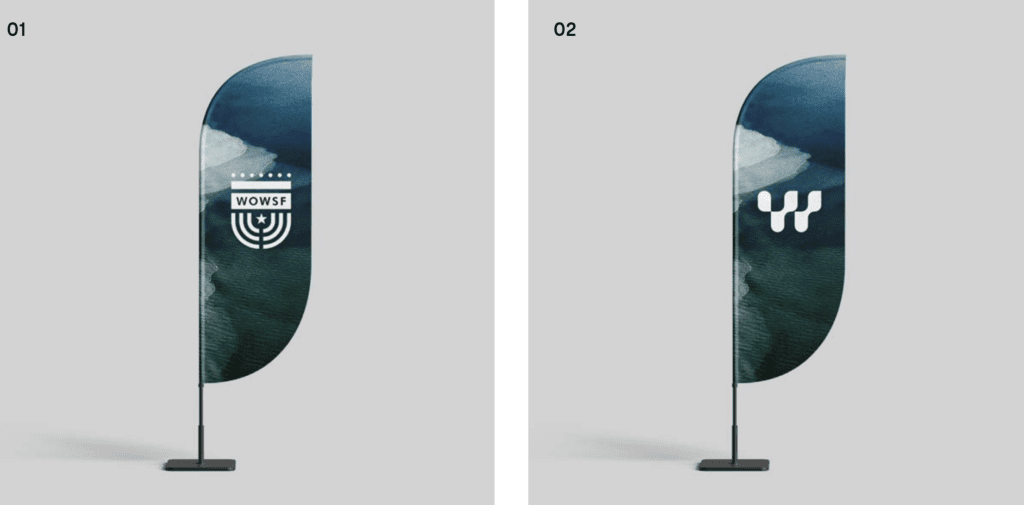 The first WOWSF image calls to mind the traditional design used by athletic associations of the 19th and 20th centuries as well with historical naval and military emblems. The design combines simple and contemporary elements in a clean, modern, balanced aesthetic.
