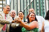 FAnne Cleveland, an International Marathon Swimming Hall of Fame Honor Swimmer, Martin Strel, a world record holder in river stage swimming, Dr. Jane Katz, a renowned author and a visionary leader in the field of aquatics, Captain Tim Johnson, a renowned tidal expert and International Marathon Swimming Hall of Fame inductee, Dr. John Chung, one of the members of Ventura Deep Six, the 2010 World Open Water Swimming Performance of the Year awardee, Tom Ball, another member of Ventura Deep Six, Anne Marie Ward, a North Channel and English Channel swimmer who was the 2010 World Open Water Swimming Woman of the Year, Nuala Moore, a renowned marathon swimming coach, Ram Barkai, a renowned extreme cold-water swimmer from South Africa who was among the first to swim around Cape Horn were among those in attendance.