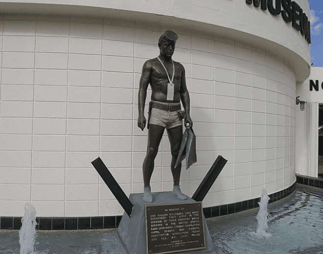 The forerunners of today’s Navy SEALs in the United States military were Frogman of World War II. The Frogman of the U.S. Navy’s Underwater Demolition Teams were called the Naked Warriors per the history compiled by The National Navy UDT-SEAL Museum (read here). These commandos cleared the beaches of Normandy and the Pacific Islands wearing nothing more than their swim trunks, mask and fins.
