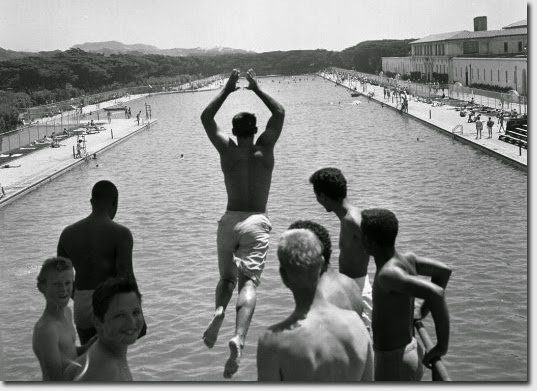 Similarly, the Fleishhacker Pool was a public saltwater swimming pool located in San Francisco and named after philanthropist and civic leader Herbert Fleishhacker. Upon its completion in 1925, the 300m x 50m pool [shown above] was one of the largest heated outdoor swimming pools in the world until its closure in 1971.