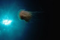 Nuala Moore, an open water swimmer, coach and diver, talks about the Lion’s Mane jellyfish that often grown to 2 meters wide with tentacles as long up to 10 meters. “We swam into walls of these on the north coast. Solid walls of Lion’s Mane jellyfish. When there are many, their tentacles become inter-meshed and form a spider’s web. It was walls of these webs that Anne Marie Ward swam through for five hours in the dark. They are often 1-2 meters below the surface of the water, but when the night darkness falls, they tend to rise for the heat. In the day, they sink down more from the sunlight.