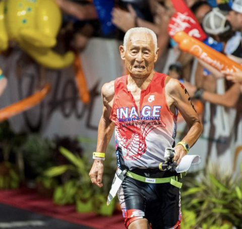 Hiromu Inada of Chiba, Japan (shown on left below) completed a full IRONMAN Triathlon World Championship (3.86 km swim + bike 180 km bike + 42 run) in Kailua-Kona, Hawaii on October 13th 2018 at the age of 85 years and 328 days – and plans to do another one in his 90’s.