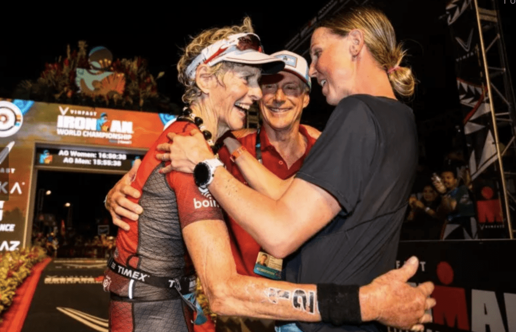 Cherie Gruenfeld of Cathedral City, USA (shown on right below) became the oldest female to complete the IRONMAN World Championship in October 2022, at 78 years and 3 months. She finished in 16 hours 20 minutes, passing Harriet Anderson who was 77 years and 11 months when she completed the same race in 2013.