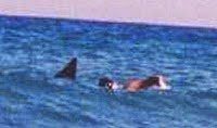 Photo shows George Park swimming off the coast of Rhode Island to Block Island together with an unexpected denizen of the deep.